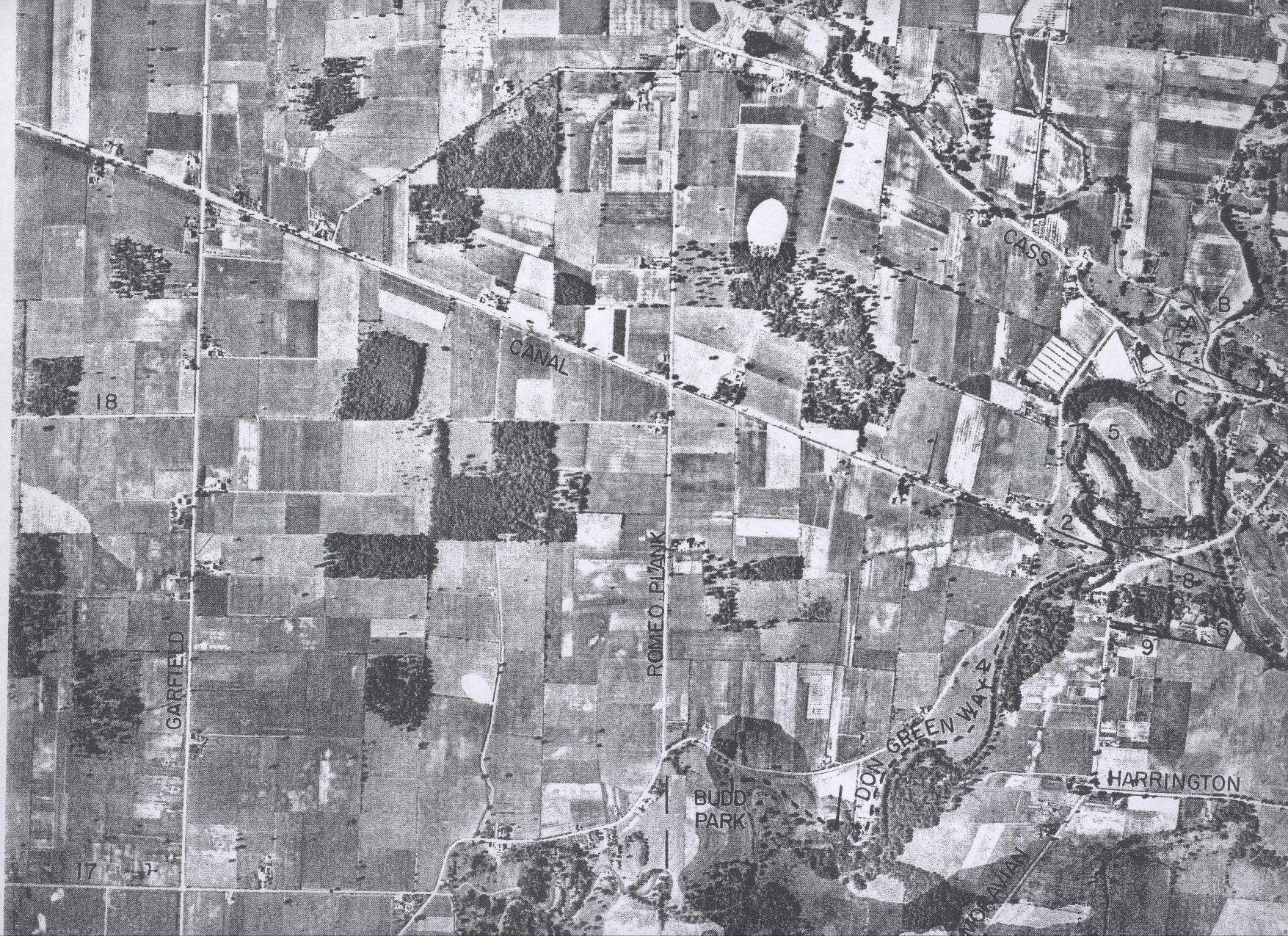 This is a larger view of a similar map that is on this site. Click on the picture for a close up view. You can search and find which corn field your house now is located.